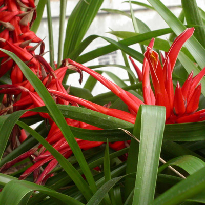 Das Bromelienhaus umfasst mit ca. 220 Bromelienarten eine der größten – wenn nicht sogar die größte – Sammlung in NRW. Bromeliacae, auch Ananasgewächse genannt, erhielten ihren Namen vom schwedischen Arzt und Botaniker Olaf Bromel. Die Ananasgewächse mit ihren 58-63 Gattungen und 2.900 bis 3.180 Arten erreichten erstmals 1493 durch Christoph Kolumbus Europa.